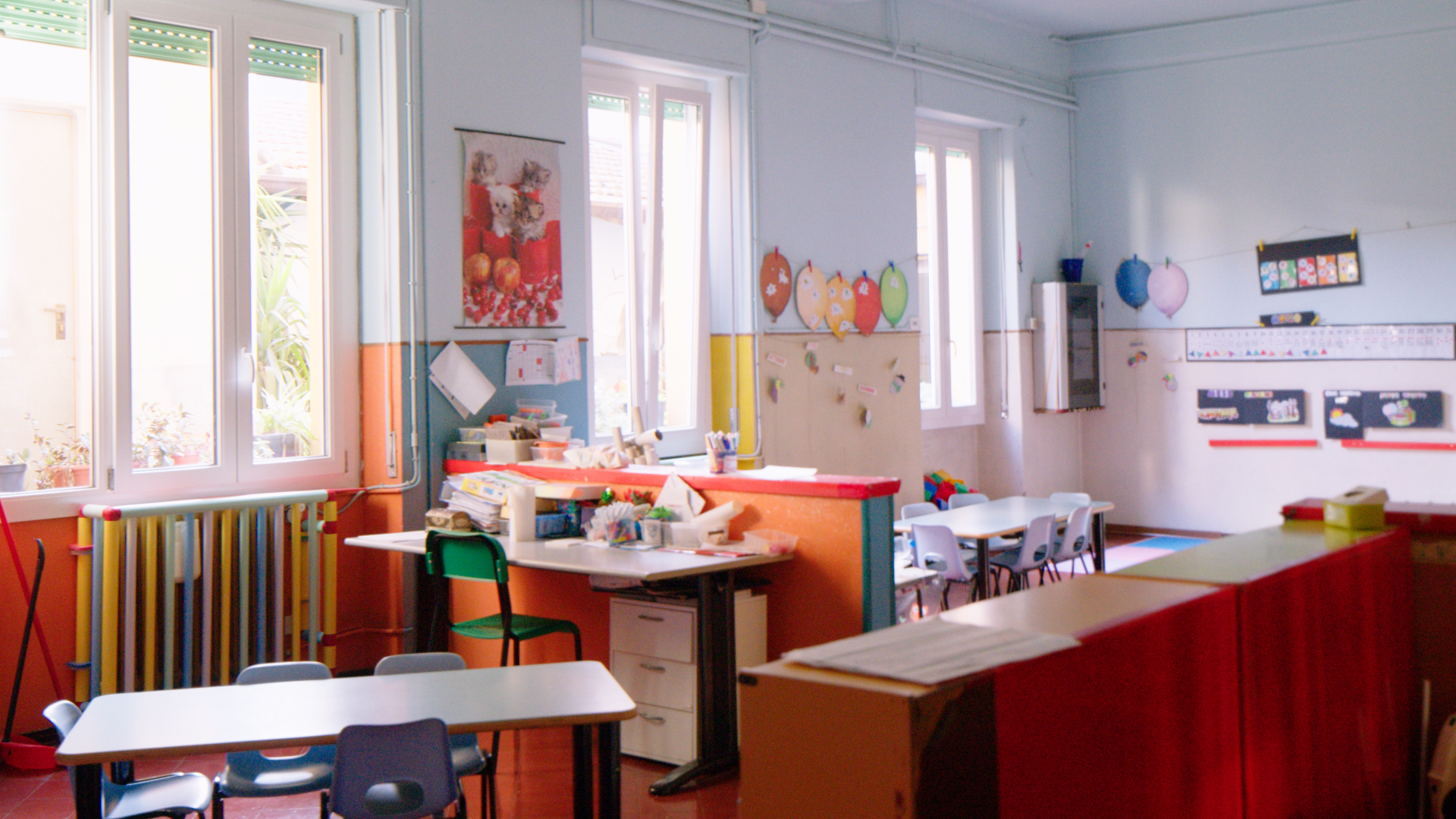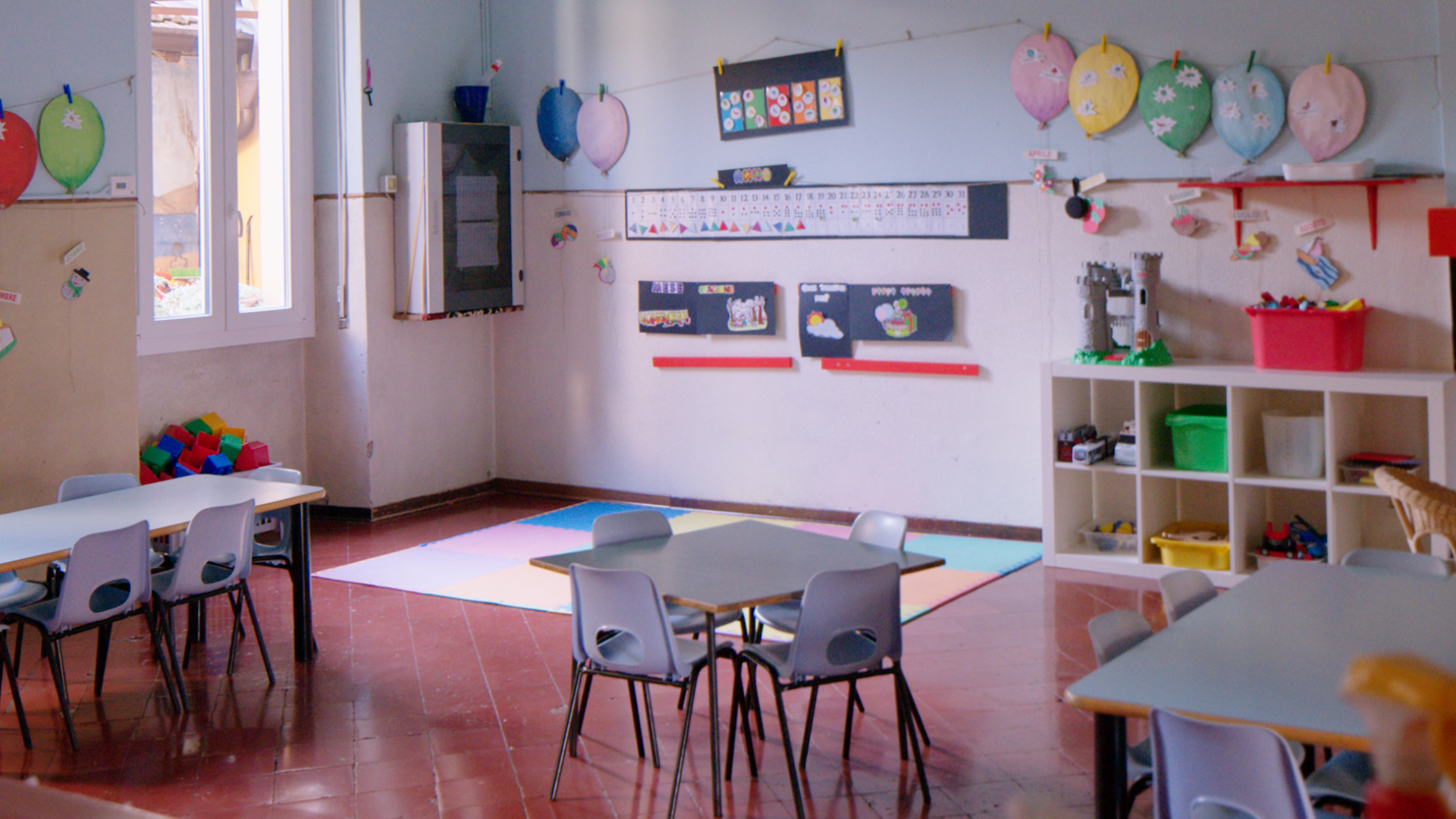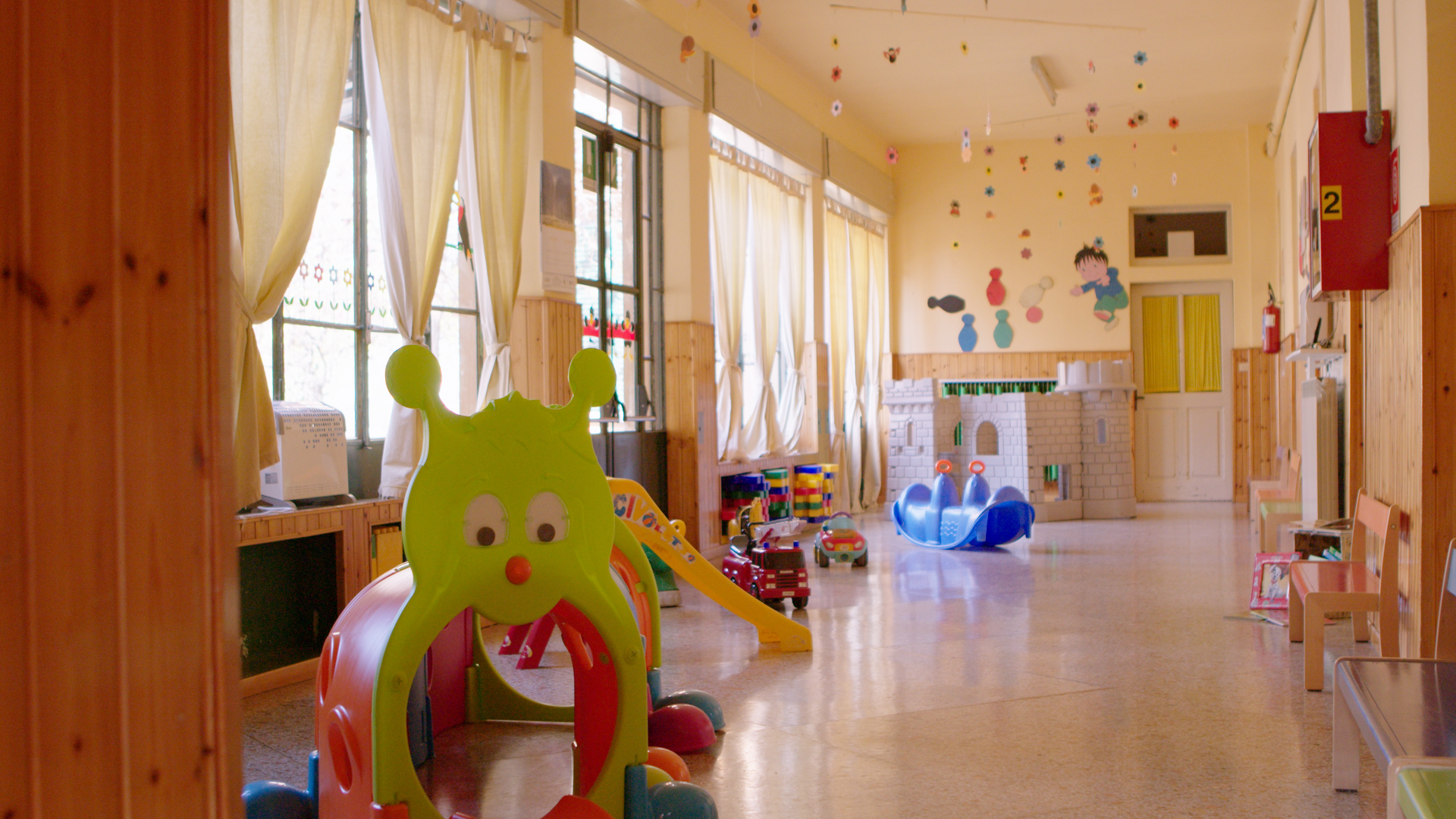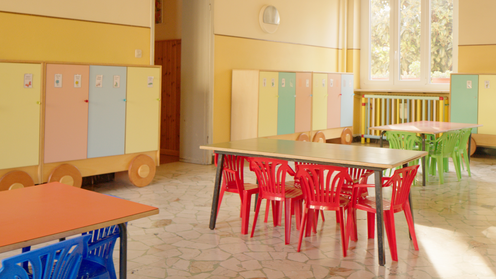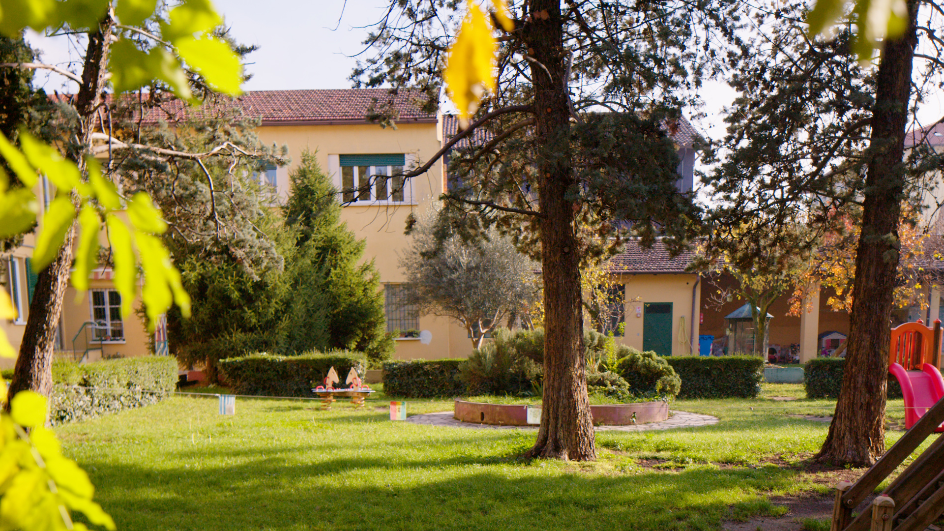 Spazi ampi e luminosi, con aule, palestra e un giardino verde e attrezzato.