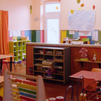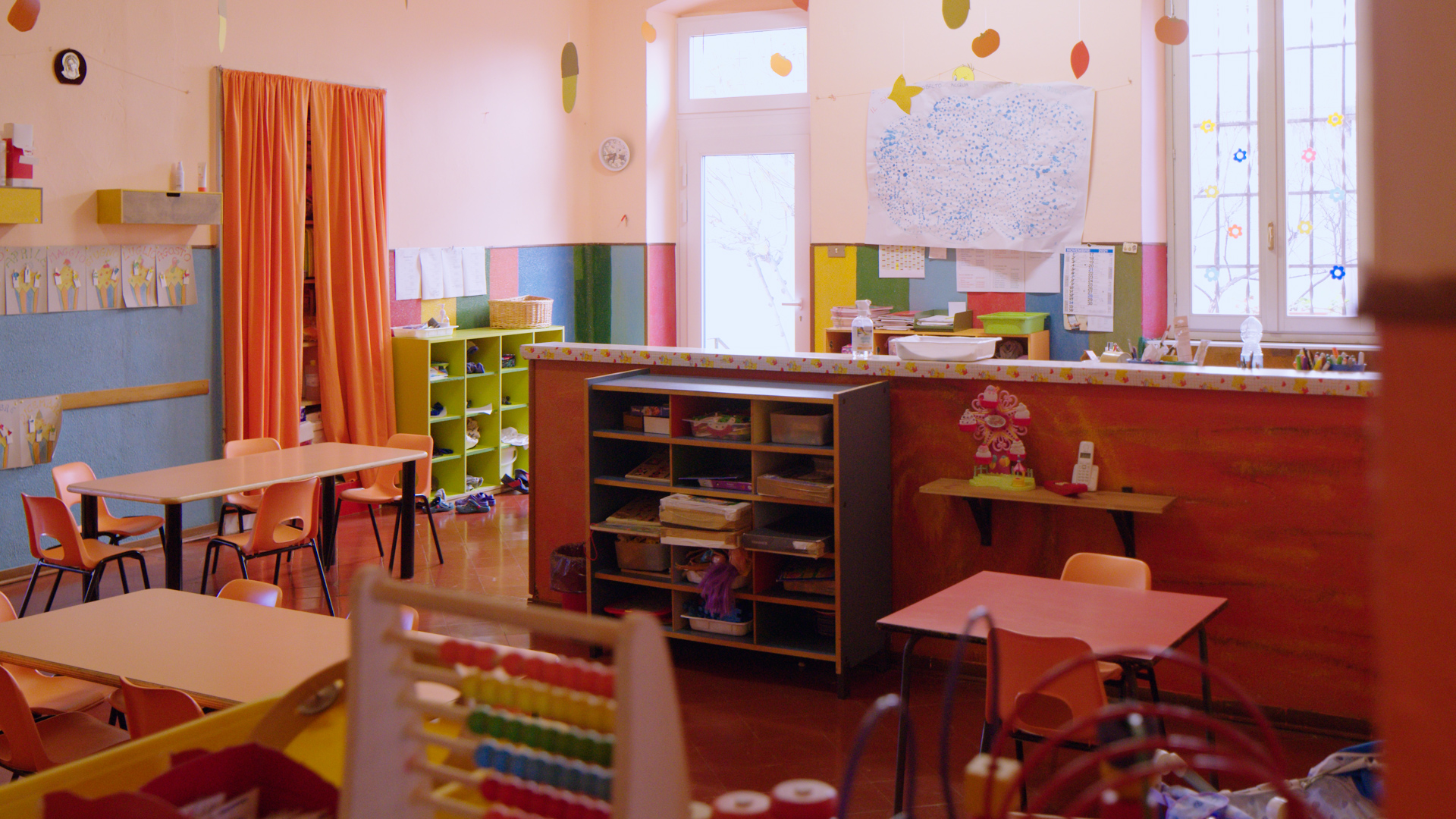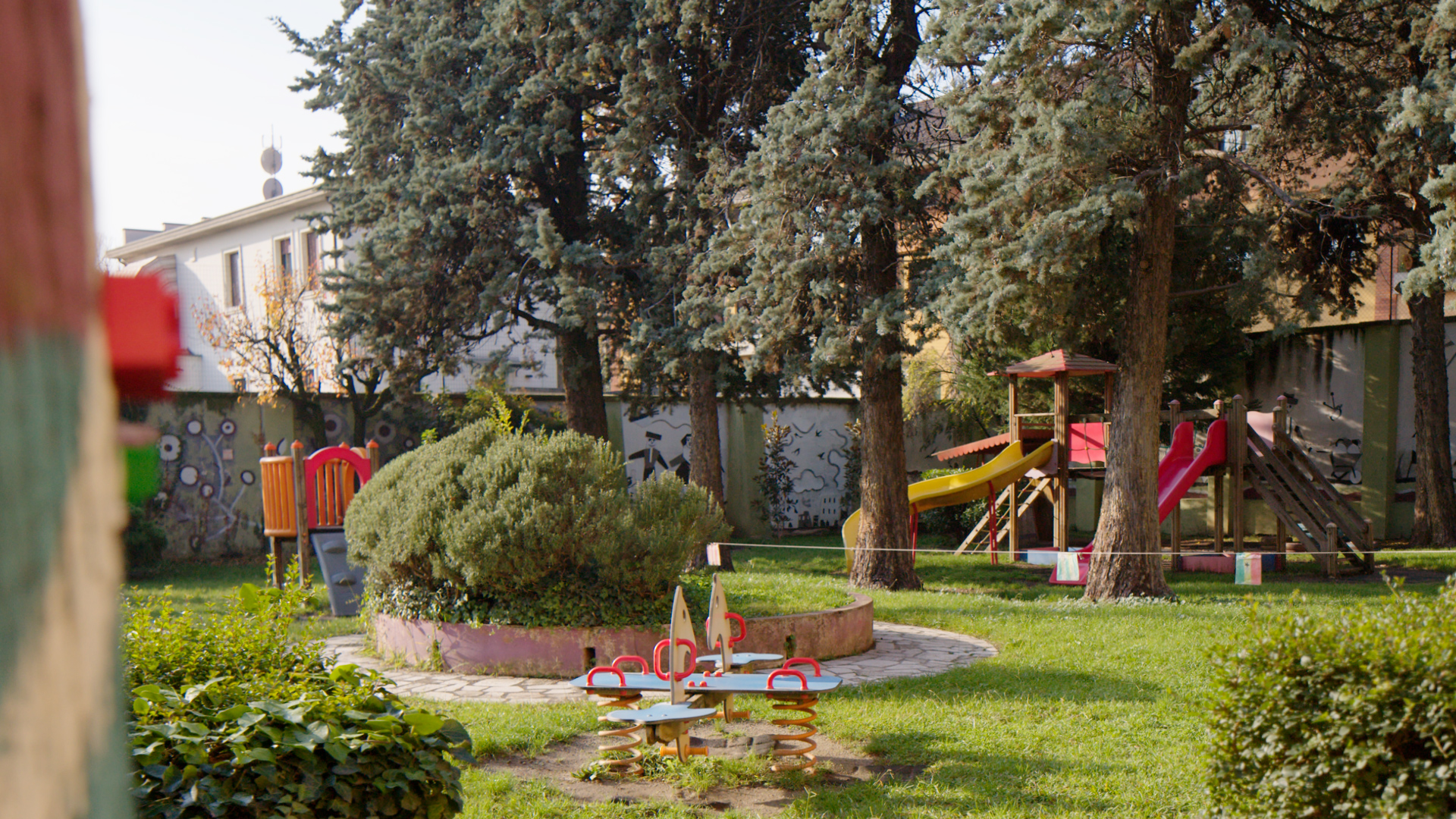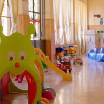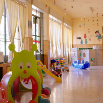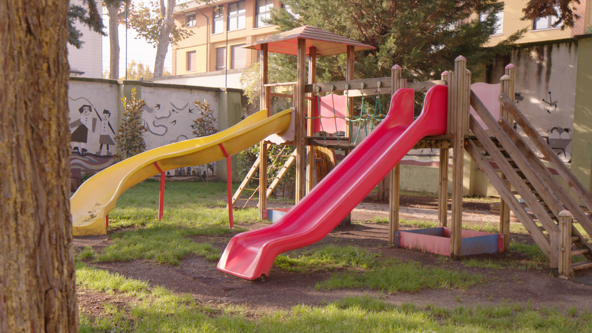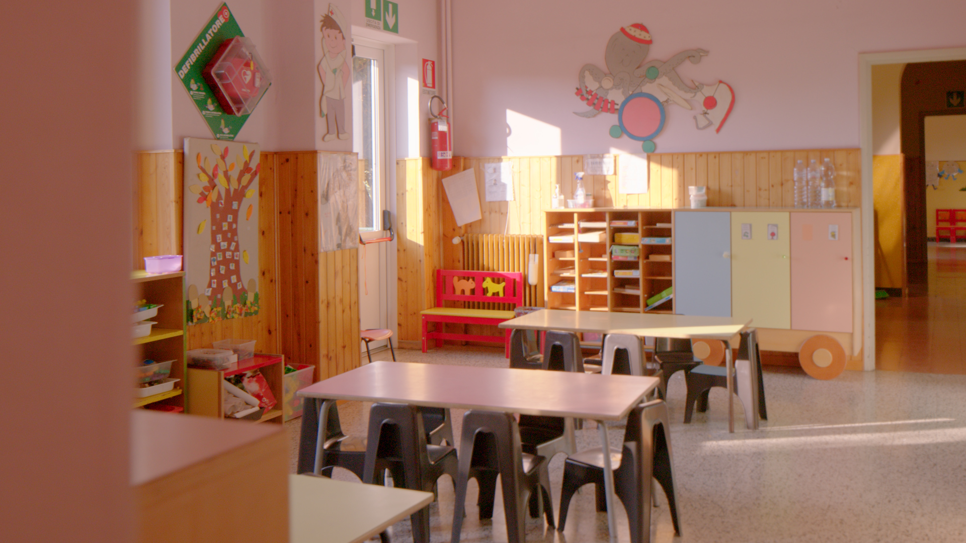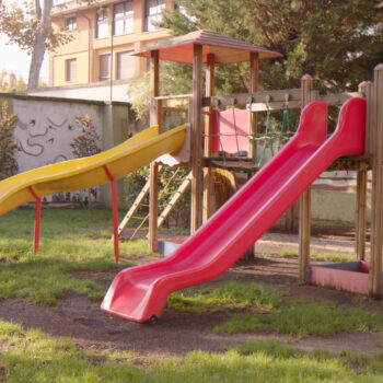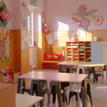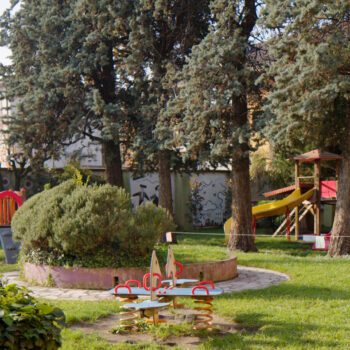 Spazi ampi e luminosi, con aule, palestra e un giardino verde e attrezzato.